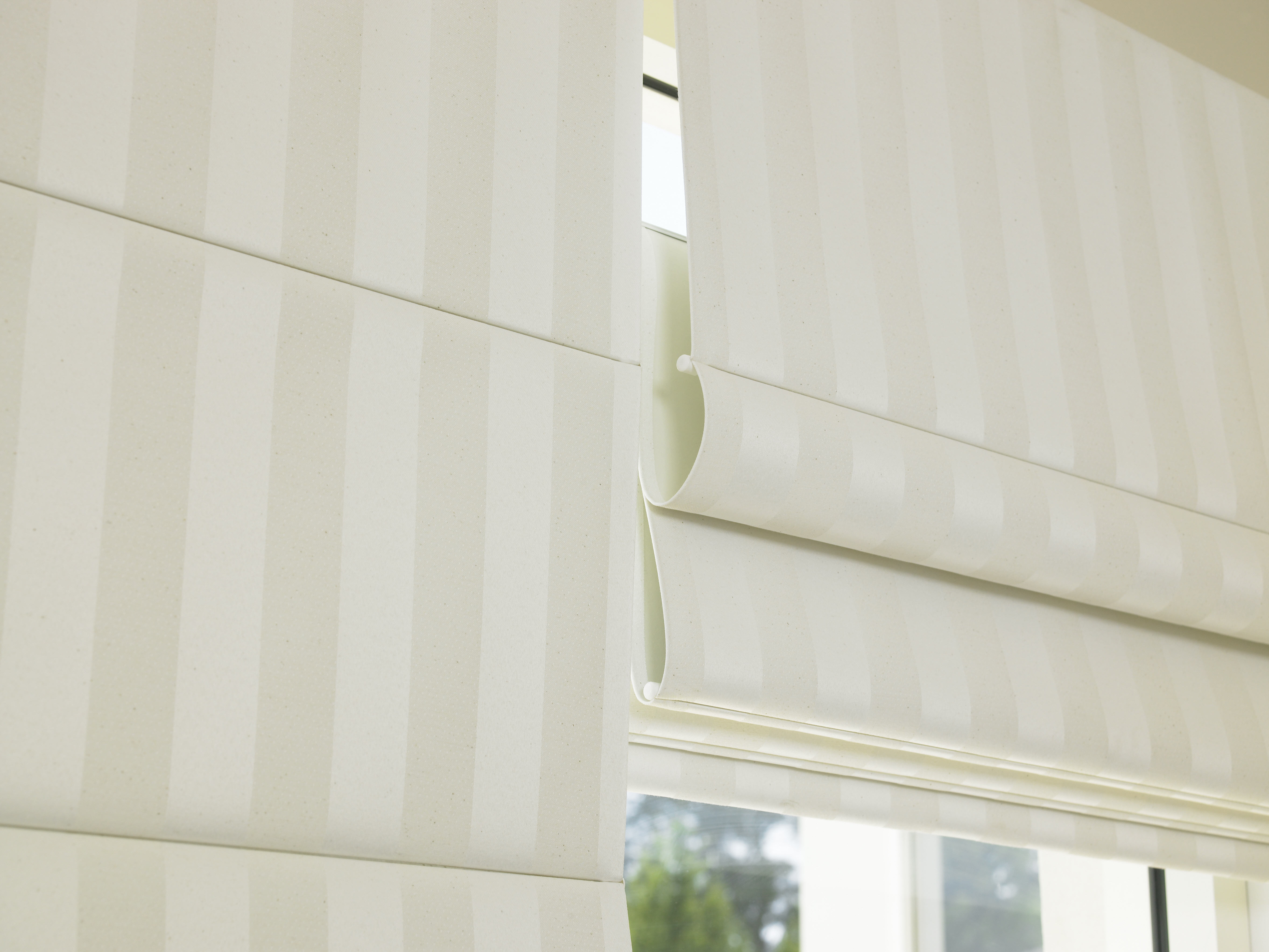 Roman blinds are fabric window coverings that fold into soft horizontal pleats when raised and lie flat when lowered. They provide a stylish and elegant alternative to traditional curtains while offering excellent light control and privacy.